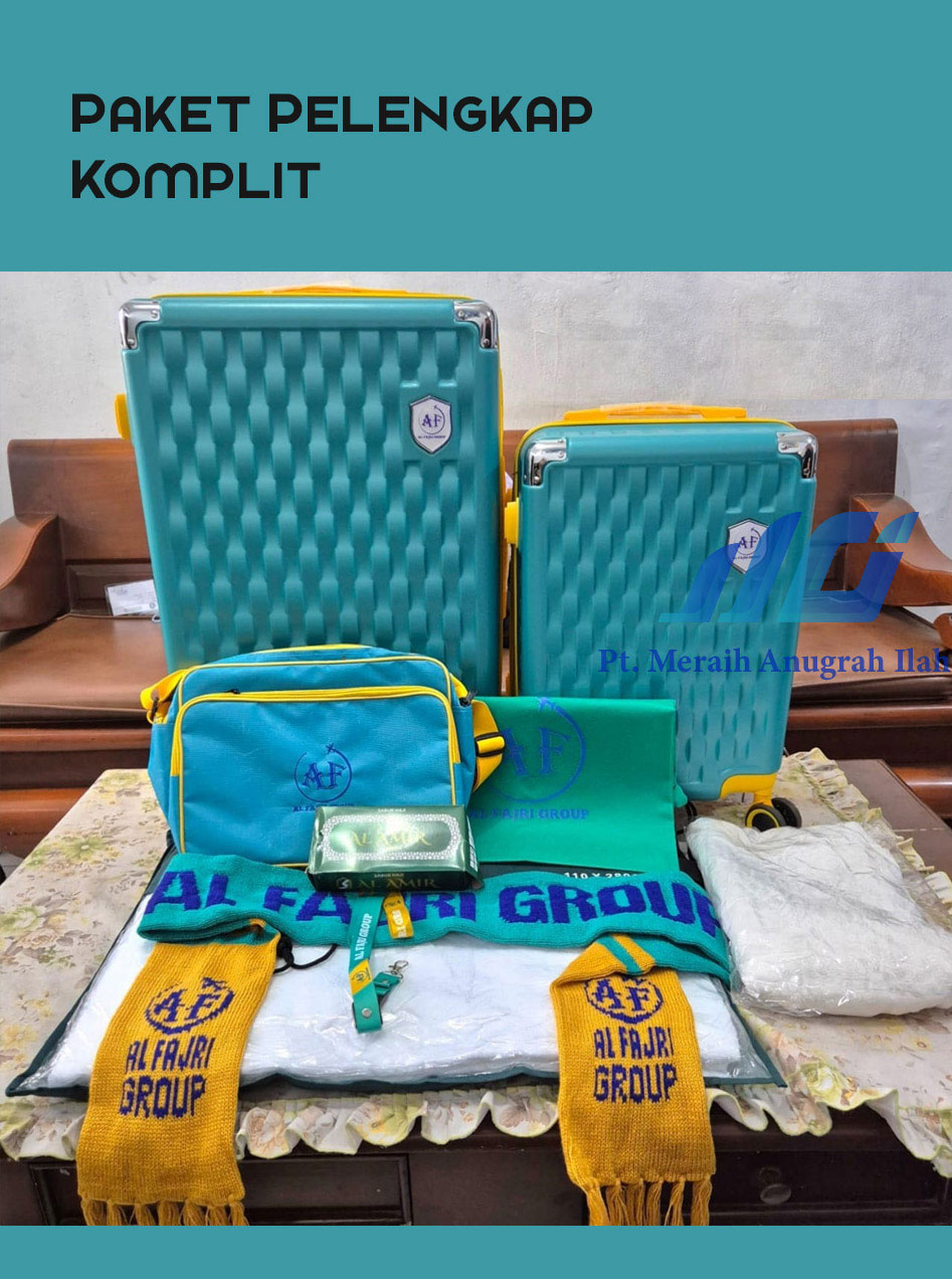 Berisi Koper 24″ Koper 20/18″ Tas slempang Tas sandal Ihram import Syal Sabuk ihram Mukena